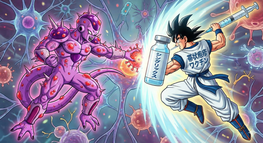 帯状疱疹(たいじょうほうしん)は、水ぼうそうのウイルスが再活性化して起こる病気で、皮膚の痛みや発疹に加え、長引く神経痛(帯状疱疹後神経痛)を残すことがあります。
